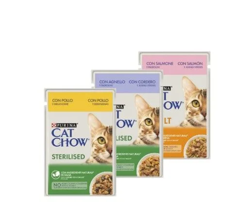 Cat Chow é um alimento complementar em molho, ideal para gatos adultos. Um alimento de elevada palatabilidade, com proteína de elevada qualidade e ingredientes naturais, para contribuir para um bom metabolismo, após a esterilização.