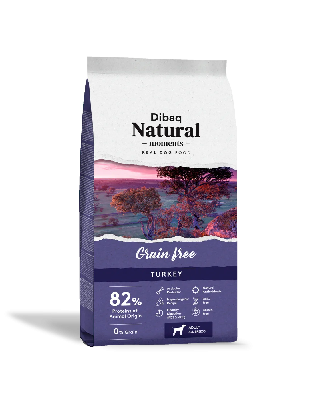 Alimento completo Hipoalergénico para cães adultos de todas as raças, hipoalergénico, sem glúten e com até 95% de proteína de origem animal. É feito com peru, batata, ervilha, protetores de articulações, plantas naturais, extrato de mandioca para neutralizar odores, prebióticos e antioxidantes naturais. Sem grãos