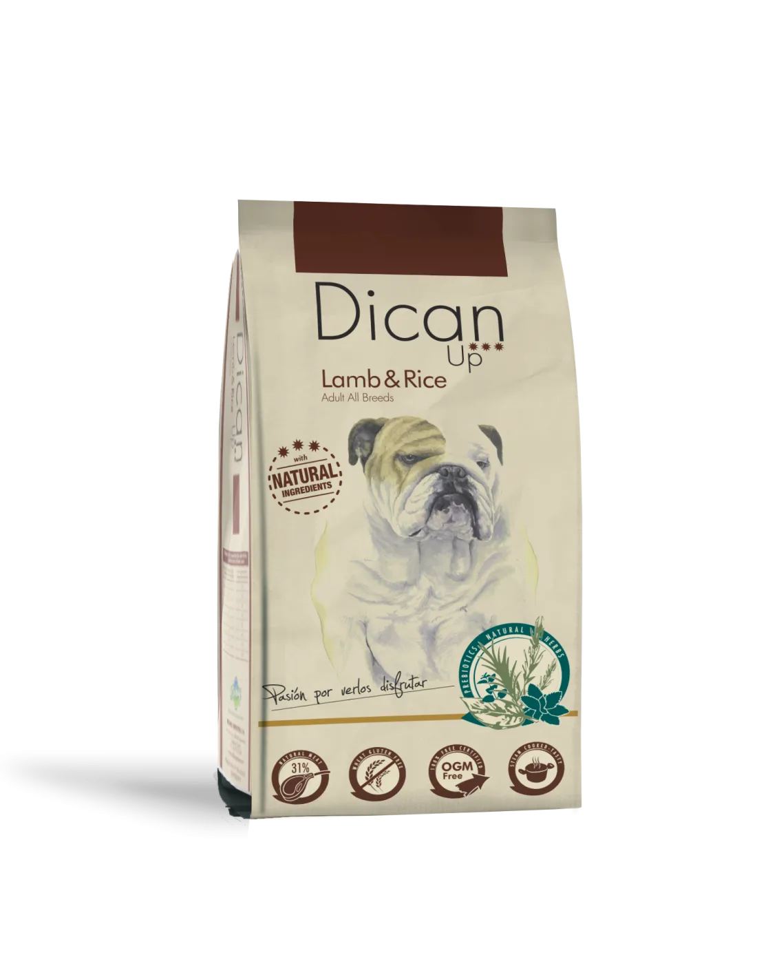 Dican Up Cordeiro e Arroz é um alimento para cães adultos de todas as raças com atividade física média-alta. Receita feita com cordeiro, arroz e plantas naturais.