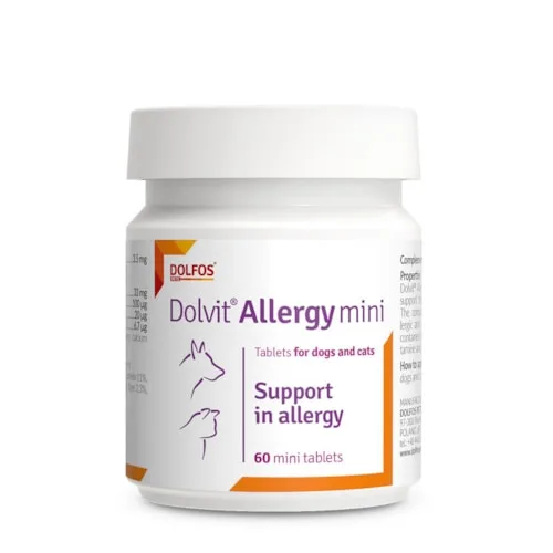 Disponível também em versão para cães com mais de 5kg. Ver https://fielpet.pt/produto/dolvit-allergy-suporte-para-alergias-90-comprimidos/