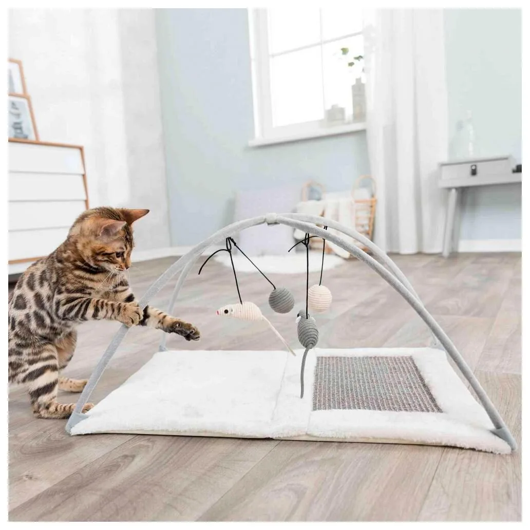 - tapete de Arranhar - sisal/pelúcia - com brinquedos suspensos em corda - dobrável e fácil de arrumar - 60x33x42 cm