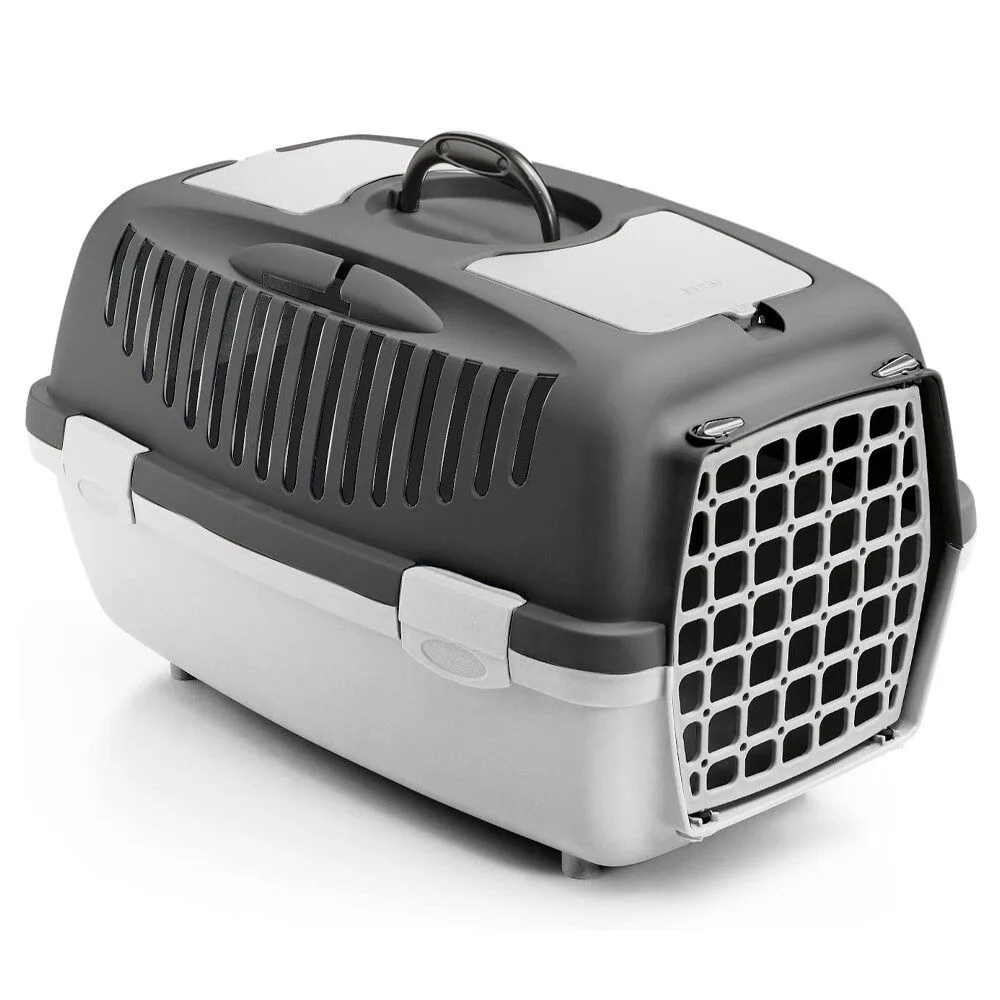 Transportadora adequada a cães pequenos e gatos. Com porta de plástico.
